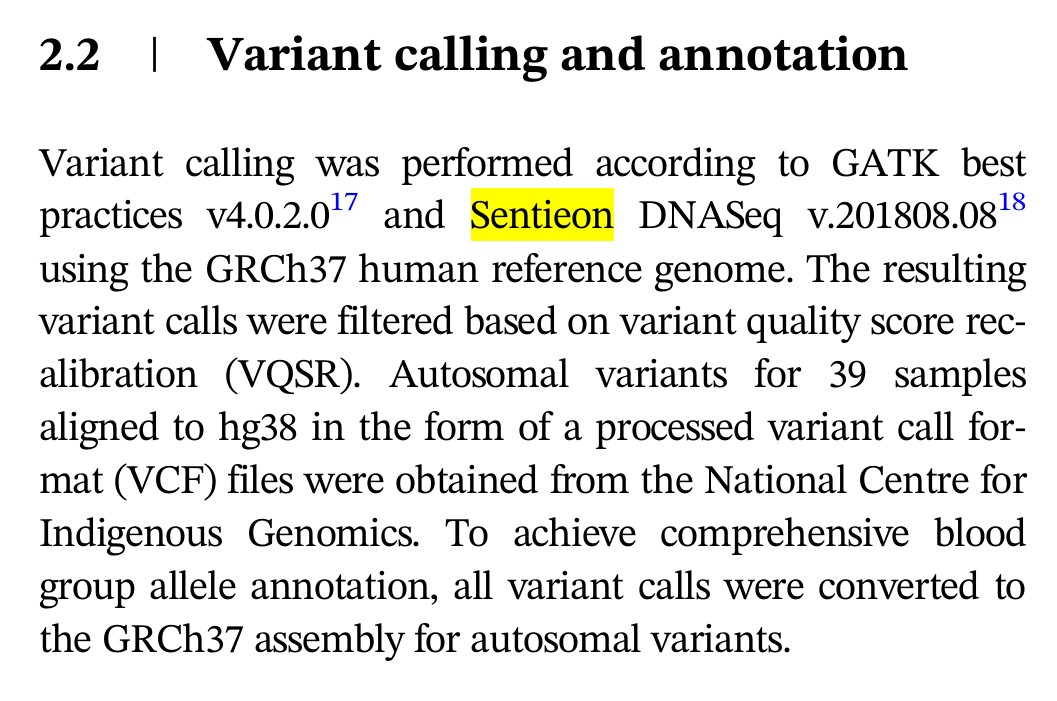 使用GATK和Sentieon DNASeq (V201808.08)进行变异检测,以GRCh37作为参考基因组。经过质量过滤,获得39个与hg38比对后存在变异的vcf文件,为进行血型等位基因注释,将变异转换为GRCh37版本。