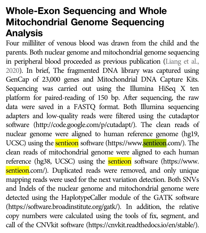 在数据分析过程中,研究团队使用Sentieon将核基因组reads比对到hg19。将线粒体基因组的reads比对到hg38。