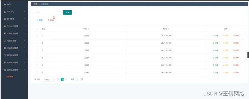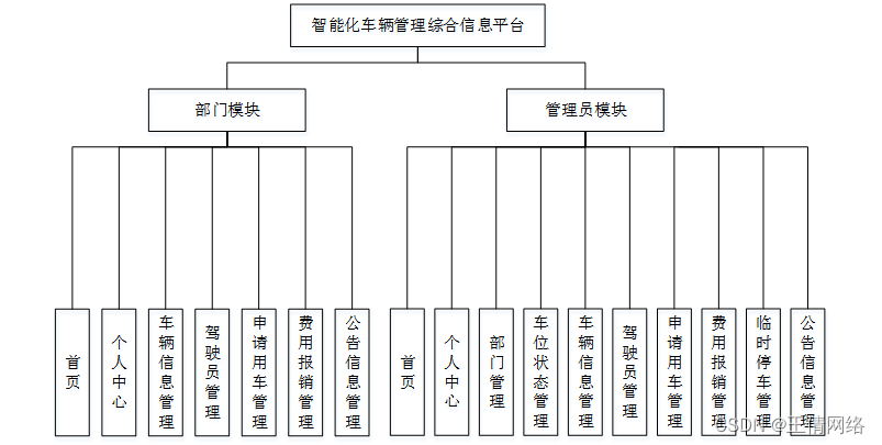 (1)功能要求:可以管理首页、个人中心、部门管理、车位状态管理、车辆信息管理、驾驶员管理、申请用车管理、费用报销管理、临时停车管理、公告信息管理等功能模块。