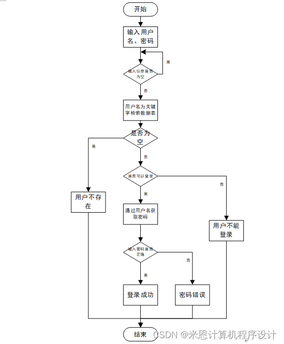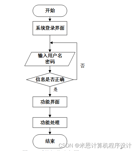 用户登录系统时需要输入正确的用户名和密码,数据库在进行匹配核实后匹配结果正确才能进入系统,若错误则提示用户名或密码错误,即无法登录。操作流程如图3-7所示。