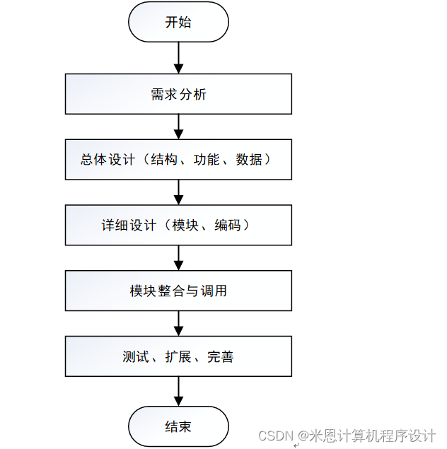 系统开发时,首先对此系统进行需求分析,进而对系统进行模块、编码等详细设计总体的设计规划,设计系统功能模块,数据库的选择等,本系统的开发流程如图3-5所示