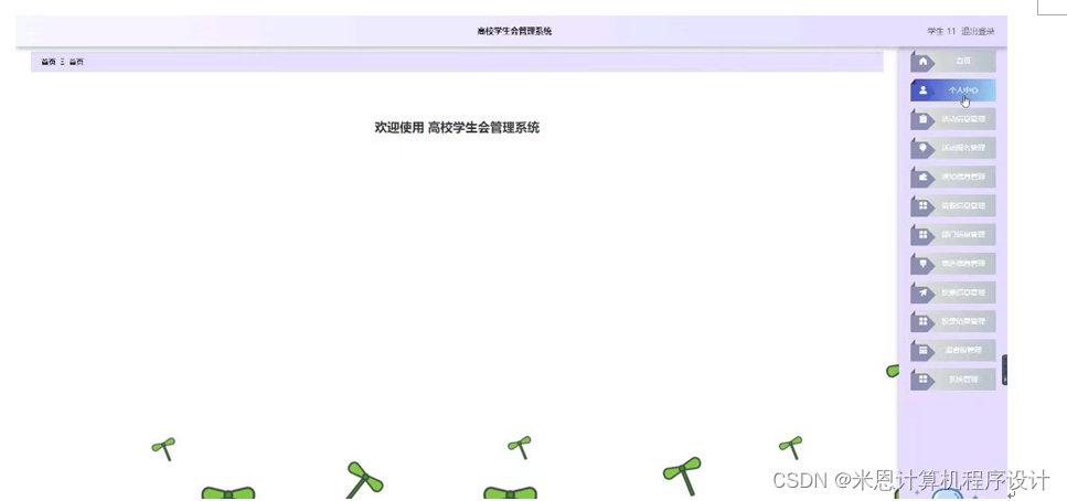 图5-12学生干事主界面
