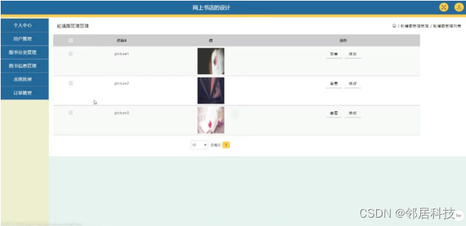 系统管理,在轮播图管理页面可以对名称,值等内容进行查看,修改操作,如图5-10所示。