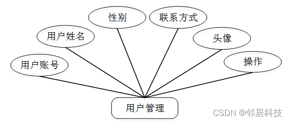 用户管理,在用户管理页面可以对用户账号,用户姓名,性别,联系方式,头像等内容进行查看,修改和删除等操作,如图5-3所示。