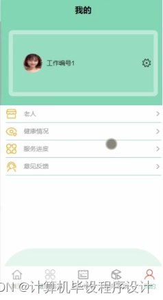 社区人员,在我的页面可以对老人健康情况,服务进度,意见反馈等详细信息进行操作,如图5-6所示。