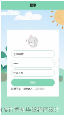 登录,社区人员,子女,老人通过输入用户名和密码,并点击登录进行系统登录操作,如图5-1所示。