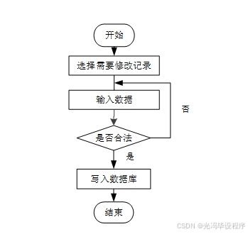 管理员可以修改大学生作业查重信息,用户可以修改自己权限内的信息,首先进入修改信息界面,输入需要修改信息,在系统进行判定为正确和合规后修改成功,并将数据更新至数据库。信息不合法则修改失败,重新输入。修改信息流程图如图3-6所示。