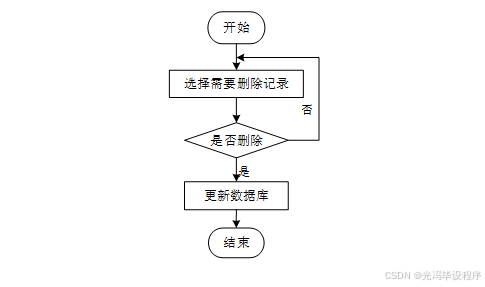 管理员可以删除大学生作业查重信息,点击删除按钮,系统会提示是否删除信息,点击确定,则信息被删除,数据库中的信息随之删除,删除信息流程图如图3-7所示。