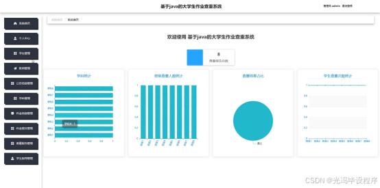作业查重:系统对上传的作业进行相似度检测,生成查重报告,报告中包括相似度百分比和详细的相似部分标注。