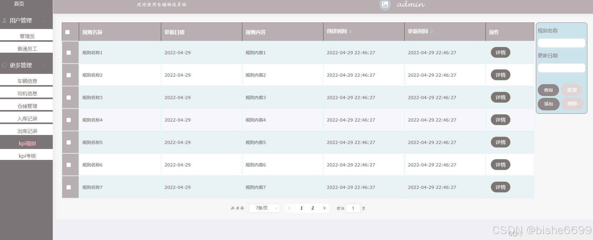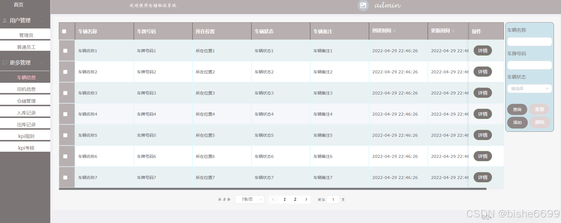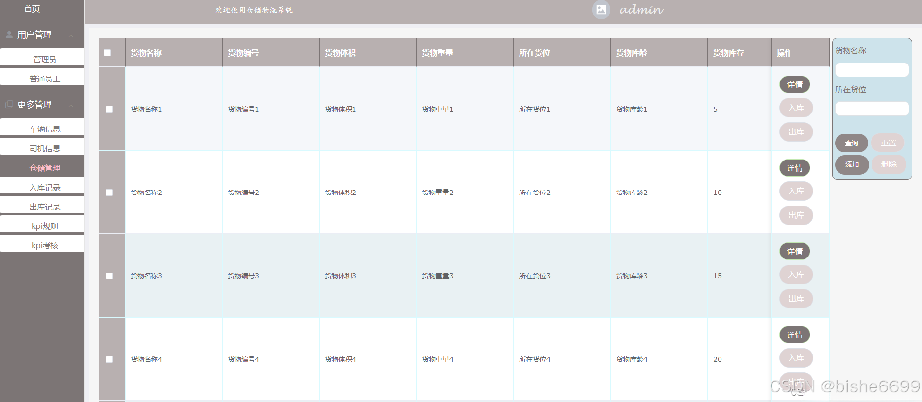 本系统适合选题:仓库、仓储、物流、仓储物流等。系统采用springboot+vue整合开发,前端框架主要使用了element-ui框架、数据层采用mybatis,功能齐全,界面美观。