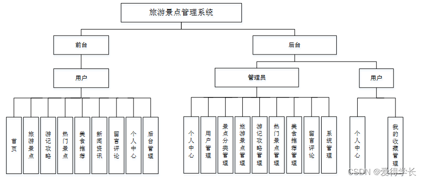 本项目是一个基于JAVAjsp的旅游景点管理系统,采用SSM + Mybatis框架,包括管理员登录、用户管理、景点分类、旅游景点、游记攻略等功能。系统详细描述了各功能模块,如管理员登录、用户信息管理、景点分类与管理、旅游景点信息的增删改查等,并配有数据库E-R图和系统功能结构图。