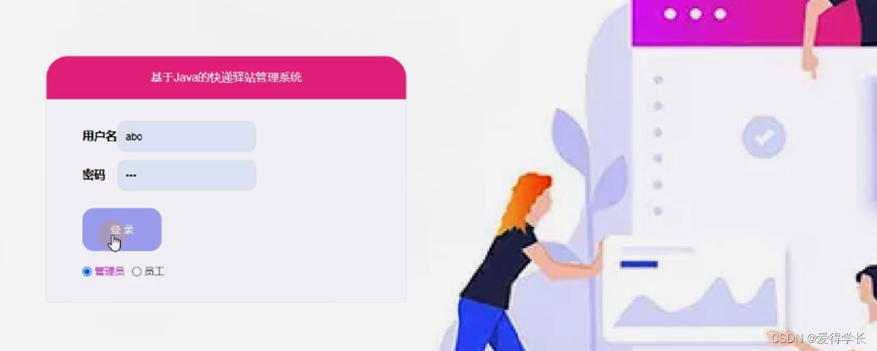 管理员进行登录,进入系统前在登录页面根据要求需要填写用户名和密码,选择登录角色,点击登录进行登录操作,如图5-9所示。