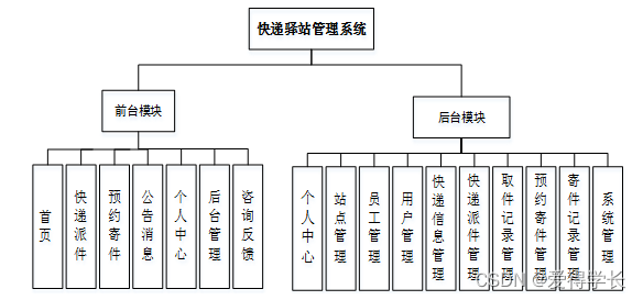 系统主要包括系统个人中心、站点管理、员工管理、用户管理、快递信息管理、快递派件管理、取件记录管理、预约寄件管理、寄件记录管理、系统管理等功能模块。