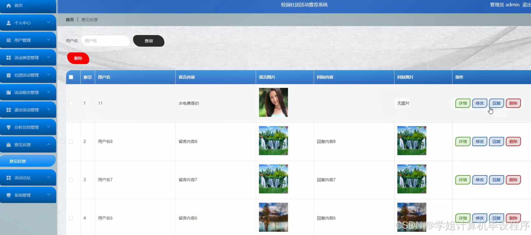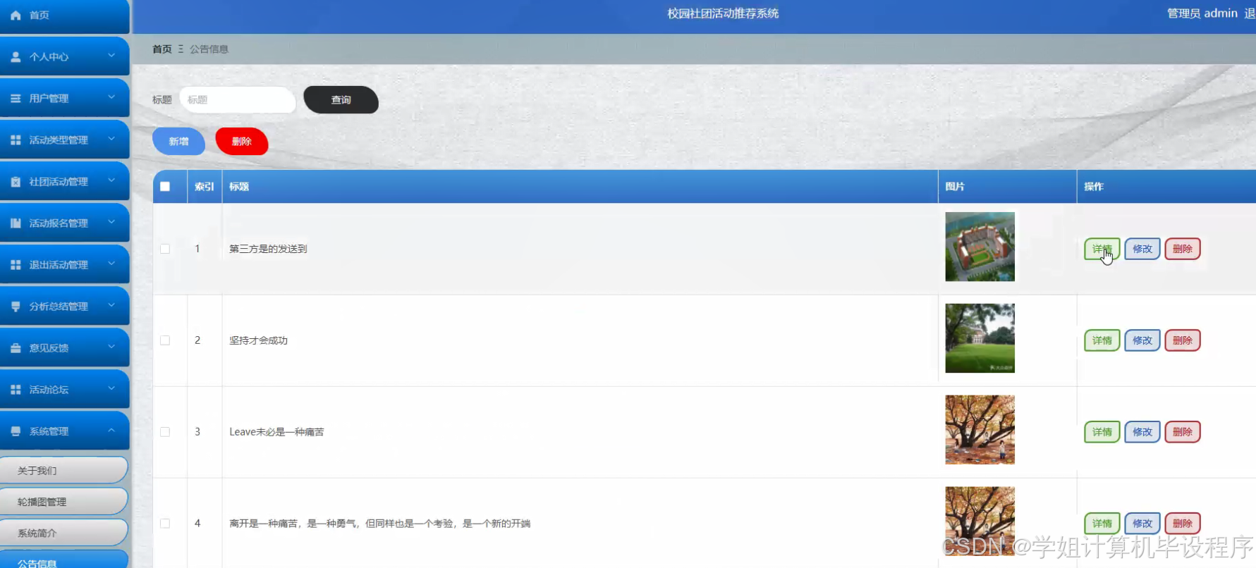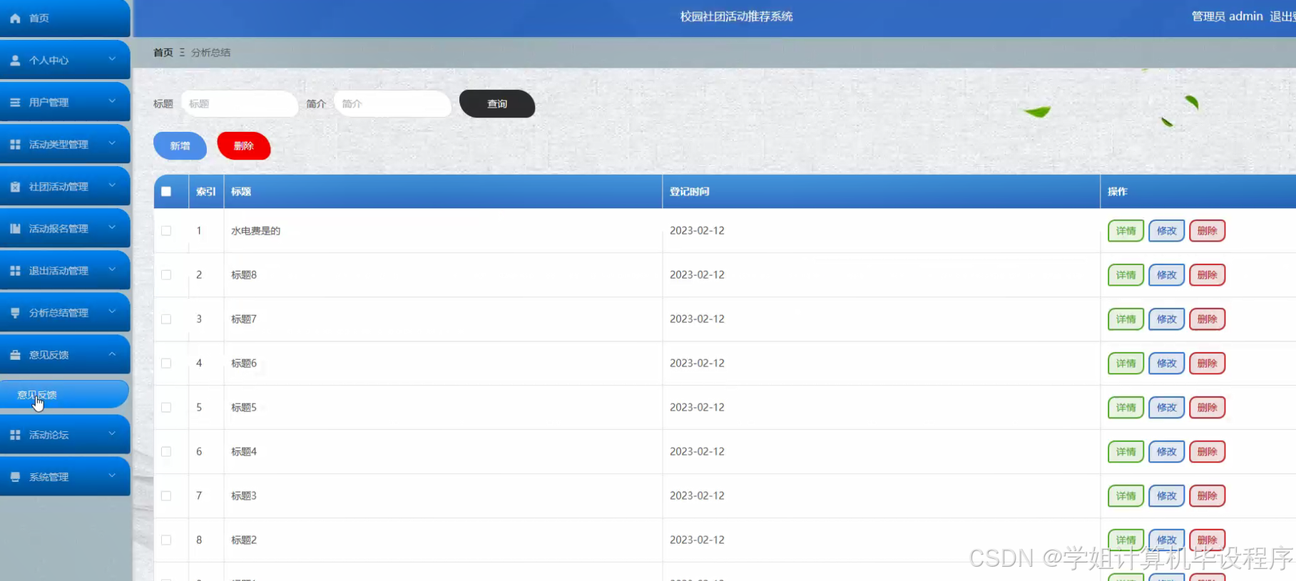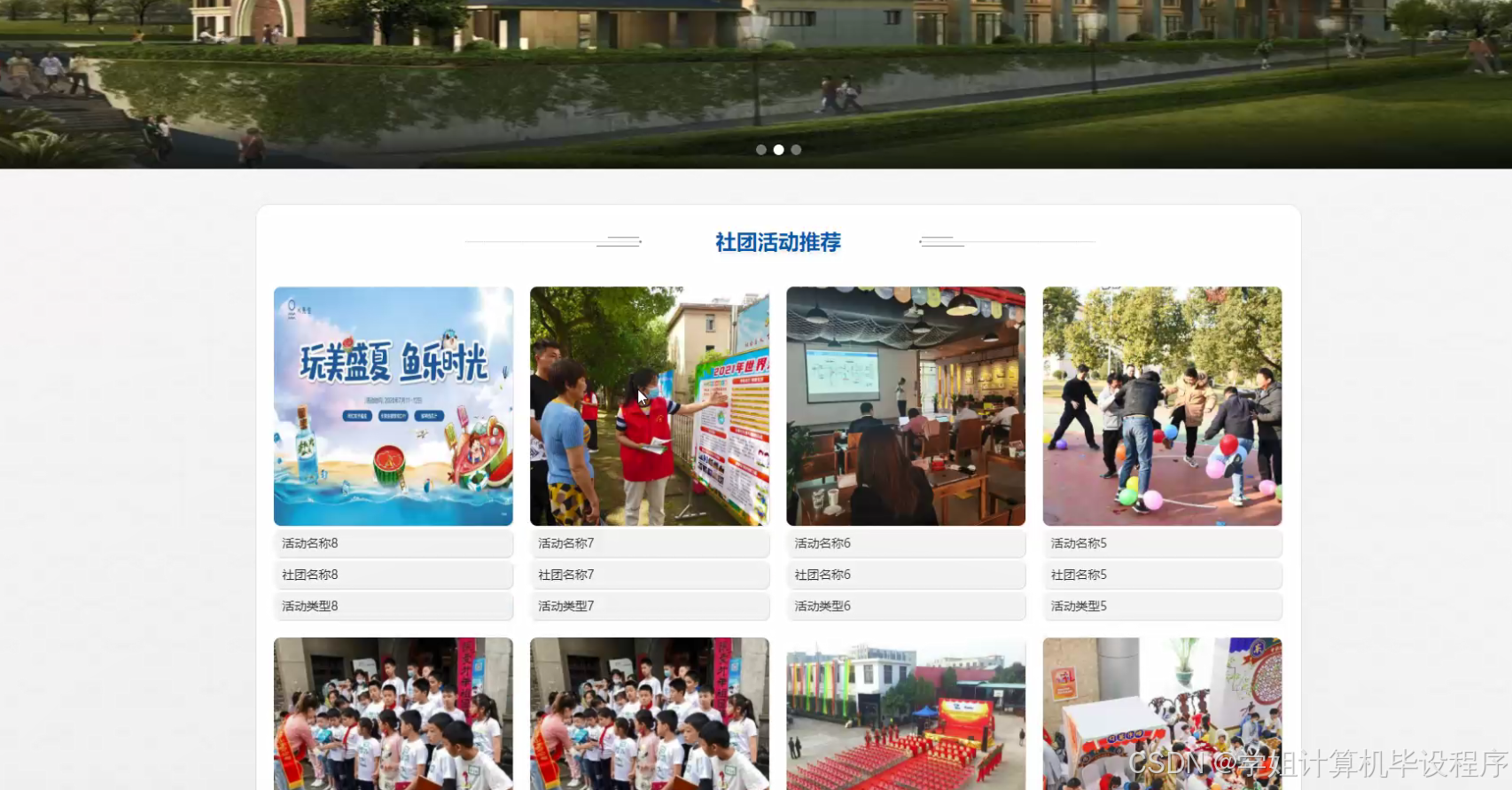 在当今多元化的校园文化中,社团活动作为大学生课外生活的重要组成部分,不仅丰富了学生的课余生活,还促进了学生综合素质的提升。然而,随着社团数量的不断增加和活动种类的日益丰富,学生在选择适合自己的社团活动时面临着信息过载的问题。传统的宣传方式如海报、传单等,已难以满足学生快速获取活动信息的需求。因此,开发一个校园社团活动推荐系统,旨在通过智能化手段,帮助学生高效筛选和推荐符合其兴趣和需求的社团活动,具有重要的现实意义。