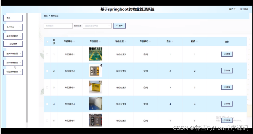 收费员管理,在收费员页面可以对索引,工号,姓名,年龄,手机等内容进行详情,修改和删除等操作,如图5-10所示。