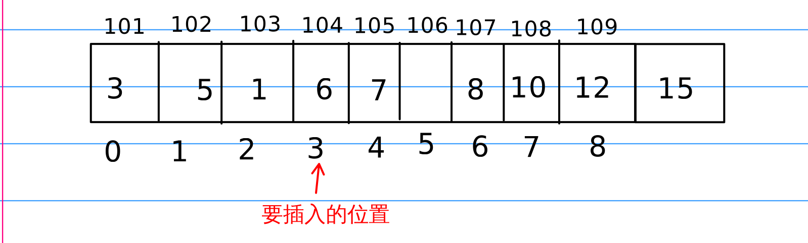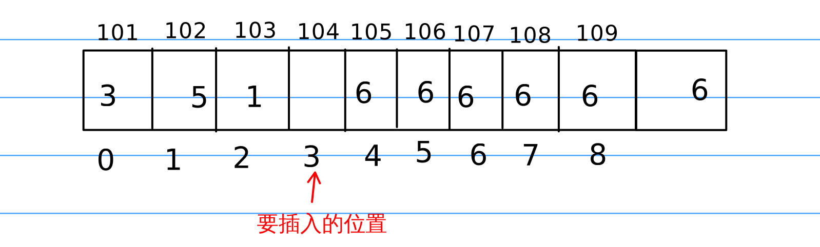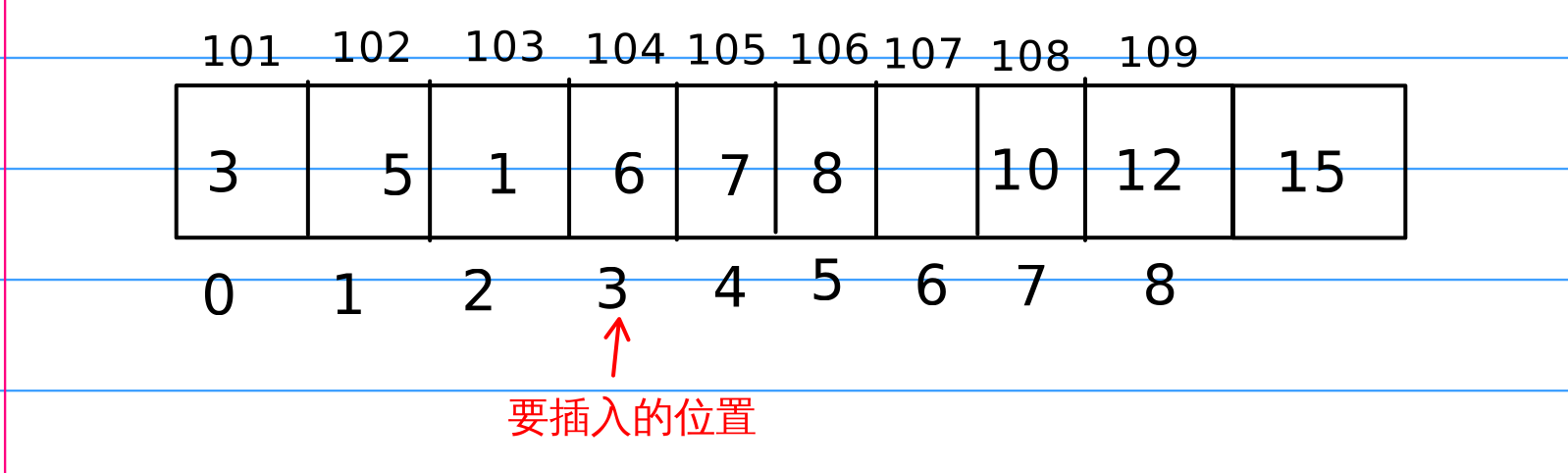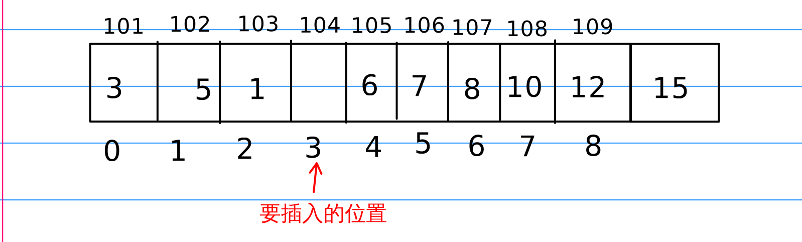 我们要往数组某个下标插入一个元素,就需要把这个下标及其后面的元素移动位置。