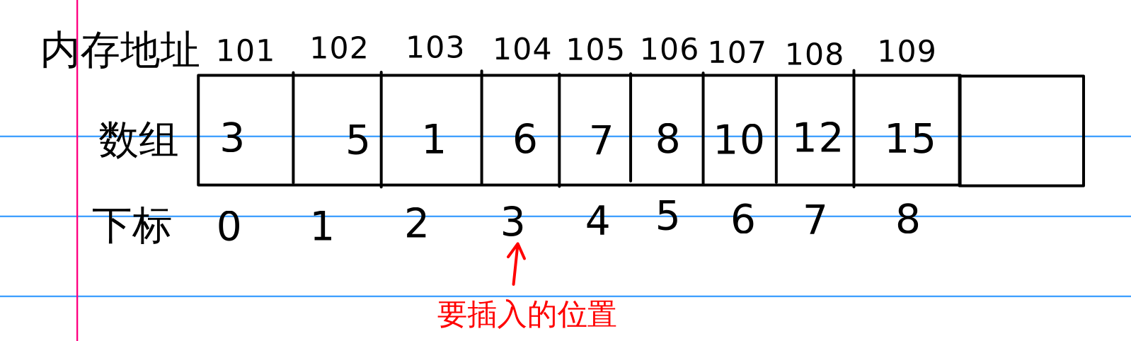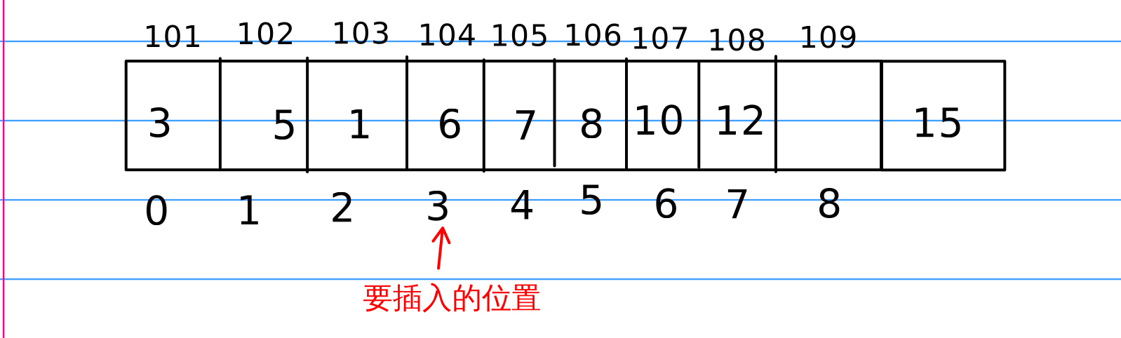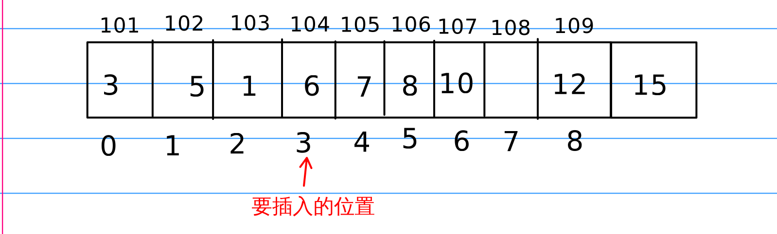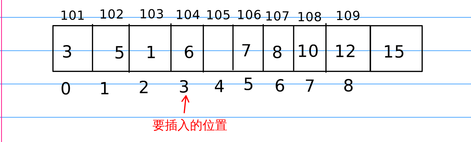 我们要往数组某个下标插入一个元素,就需要把这个下标及其后面的元素移动位置。