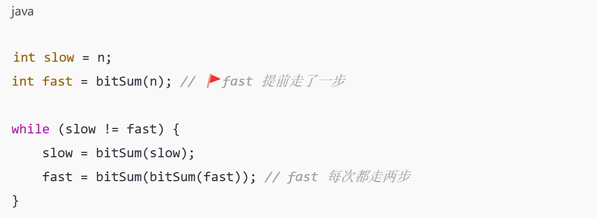 假设你有一个循环,快指针每次走两步,慢指针每次走一步。