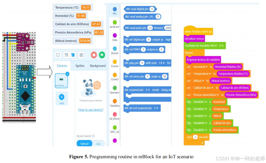 - 在执行计划阶段,学生设计IoT场景,设置电路,并在mBlock中创建编程例程。