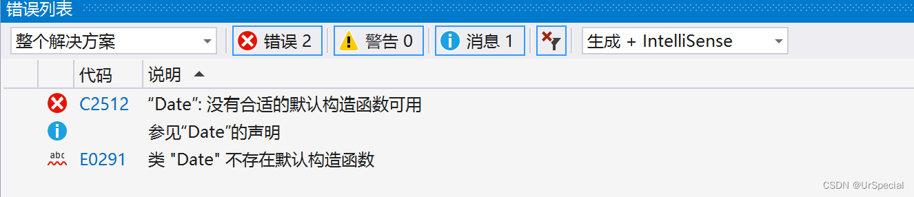 如果我们没有显示的写构造函数,那么编译器会自动生成一个默认构造函数,一旦我们显示的定义了,编译器将不会在自动生成。