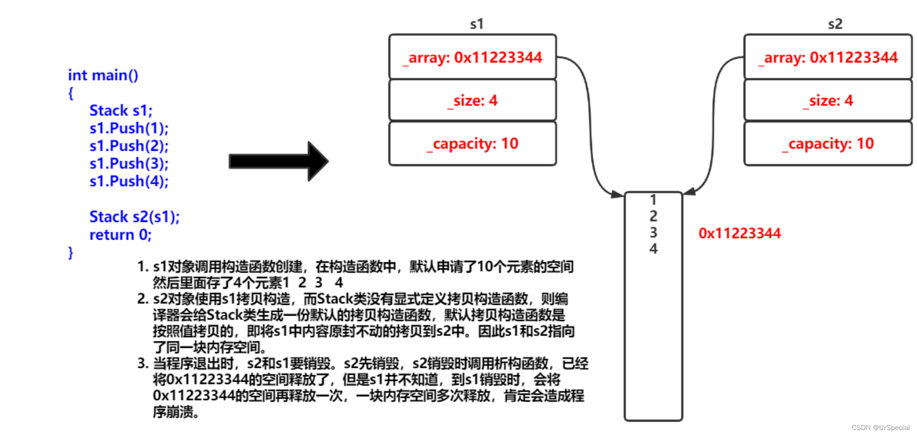 自己实现了析构函数释放空间,就需要实现拷贝构造函数。