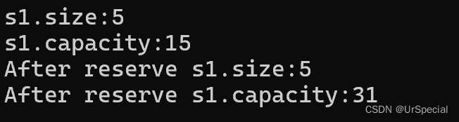 cout << "After reserve s1.capacity:" << s1.capacity() << endl;
