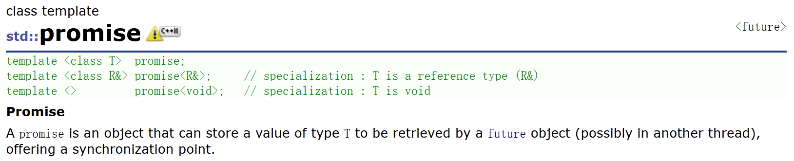 std::promise是一个模板类,用于在一个线程中设置值或异常,然后通过关联的std::future对象在另一个线程中获取这些值或异常。这么说很抽象,看接下来的使用就明白了。