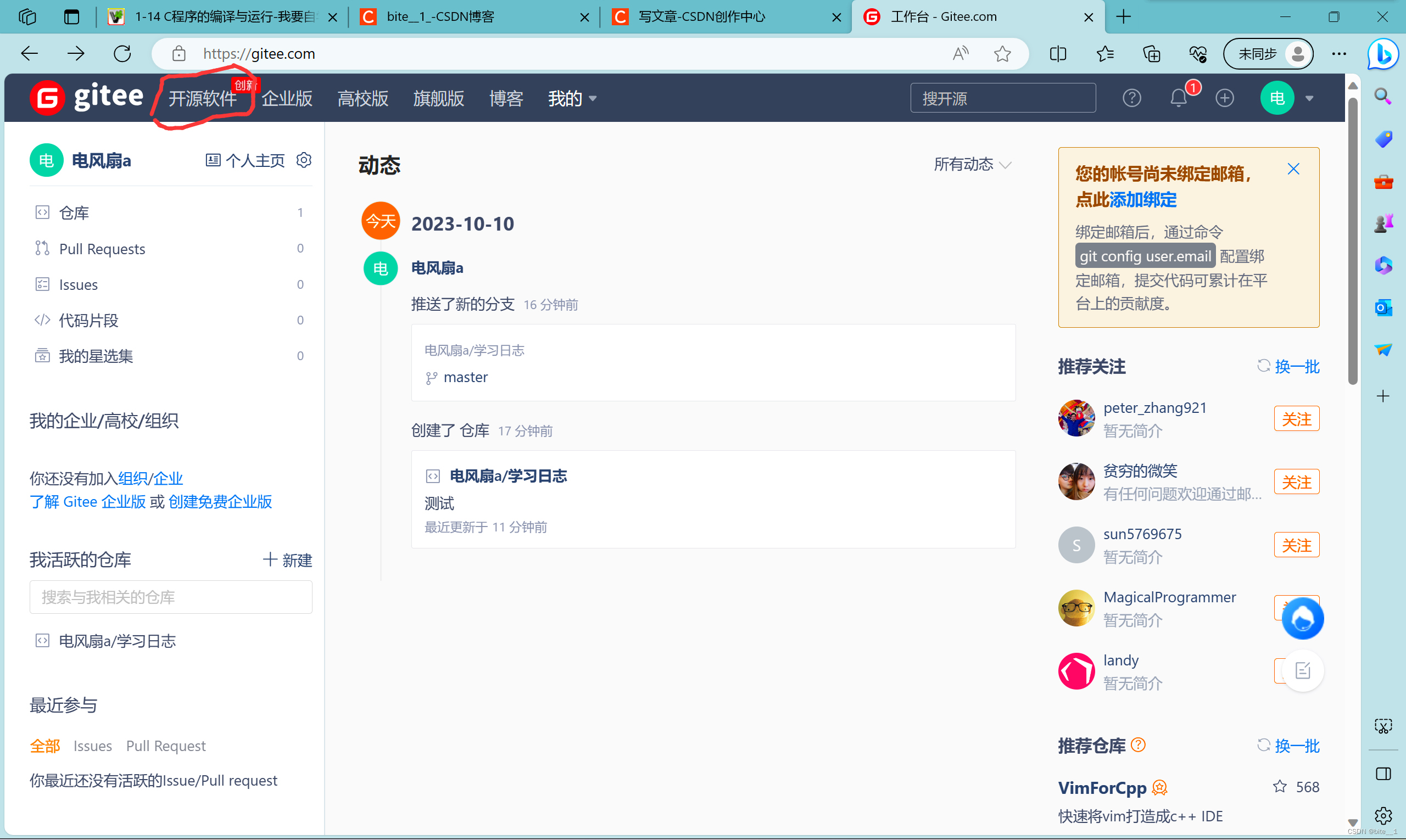 1.码云的网址:https://gitee.com