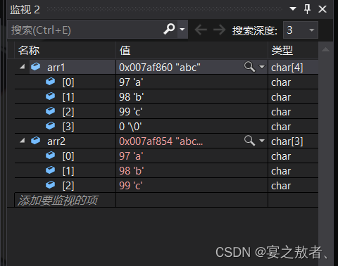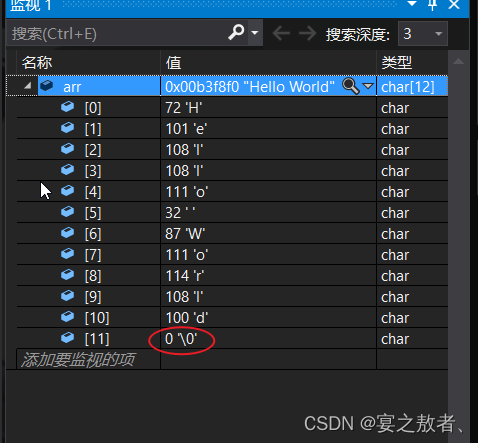 可发现,arr的最后一个符号中,赫然有个 ‘\0’ 这个\0就是字符串的结束标志