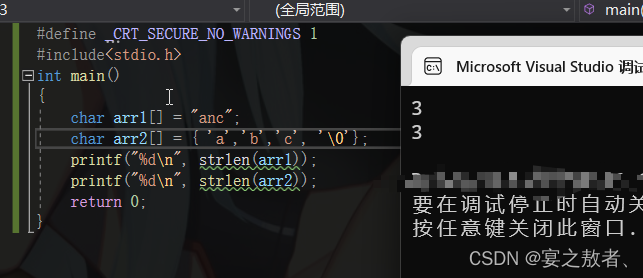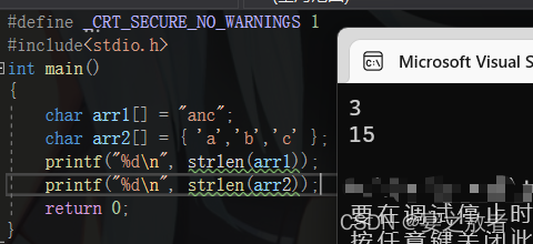 当给arr2后面加上/0后打印出来的就是 abc 打印的长度也是3
