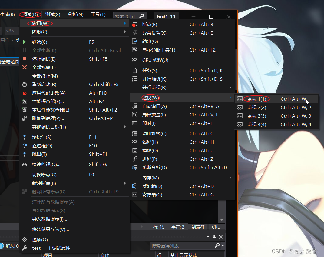 进行调试,再多按几下,使得数组代码调试起来后,进行以下步骤