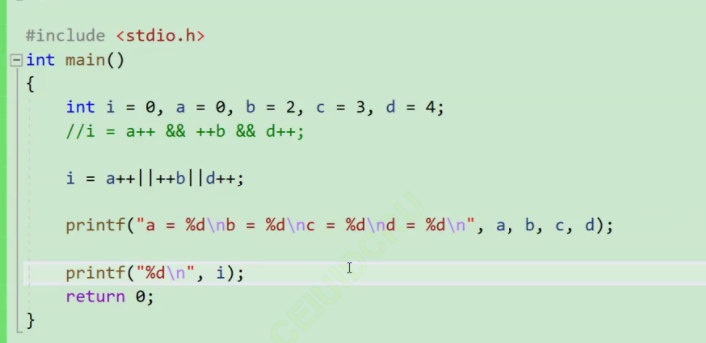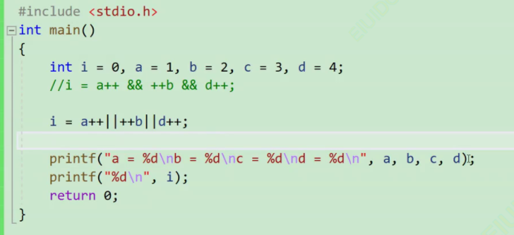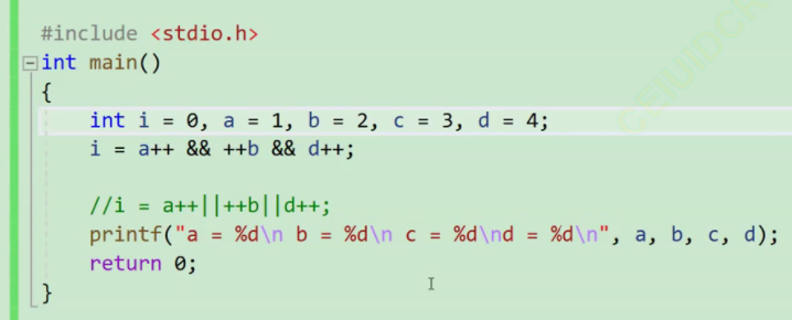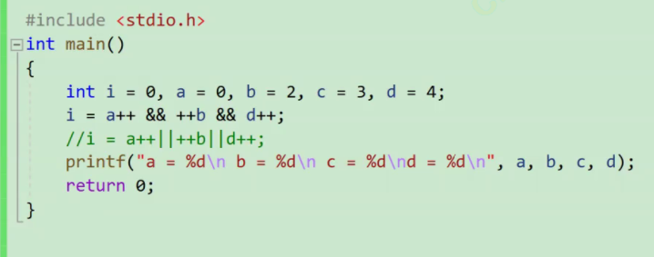 这里的a++是0,0为假,++b就不用算,也为假 a++ && ++b,整体都为假了,后面也不用算了。