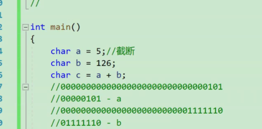 讲2者相加后值赋给c,但c是char类型所以需要截断