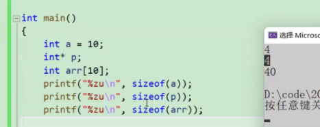 所有指针类型大小都是固定的4字节。(前提是在x86环境下,x64环境就是8字节)