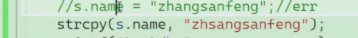 要想改name,就得使用strcpy函数