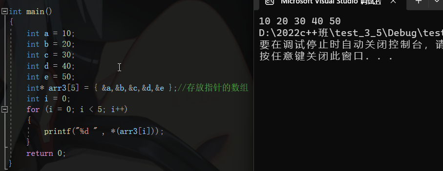 存放指针的数组