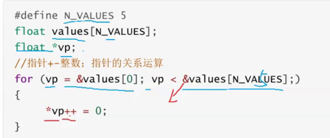 这里*vp++,是先解引用vp,然后将它赋值为0,因为++是后置的,所以赋值完成后才会++,vp才会指向下一个元素