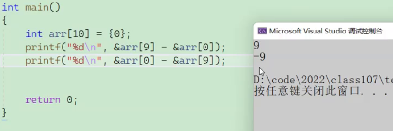 指针-指针就是计算指针之间的元素个数