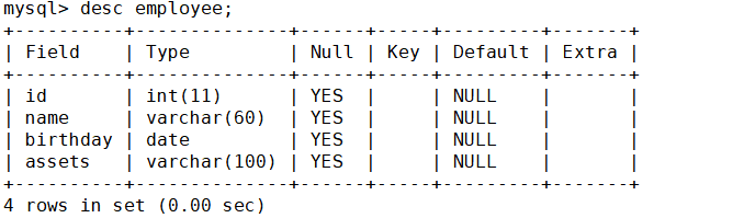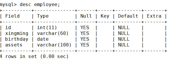 alter table employee change name xingming varchar(60); --新字段需要完整