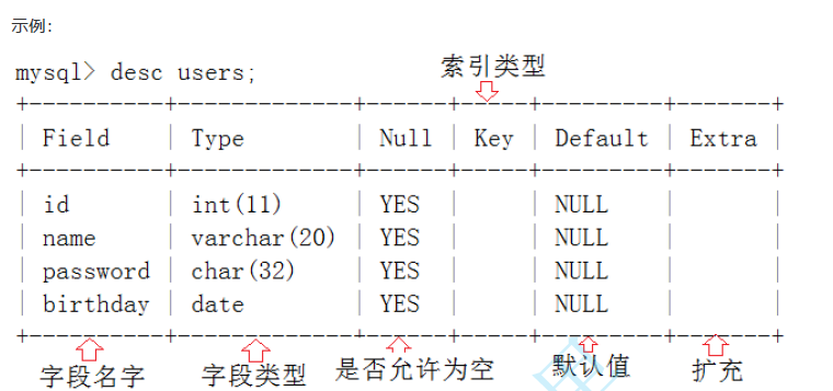 ) character set 字符集 collate 校验规则 engine 存储引擎;