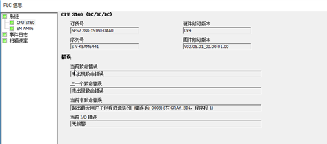 进一步监控PLC信息,可以看到图6的非致命错误报警:超出最大用户子例程嵌套级别(错误码:0008)