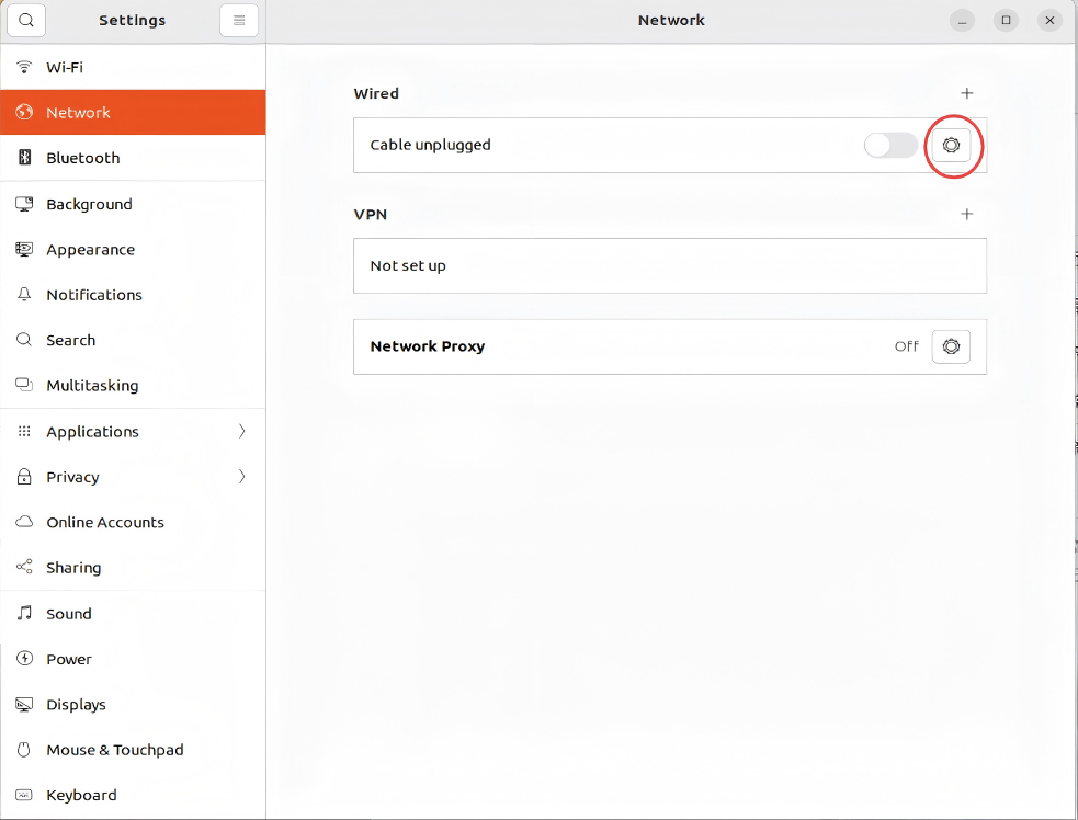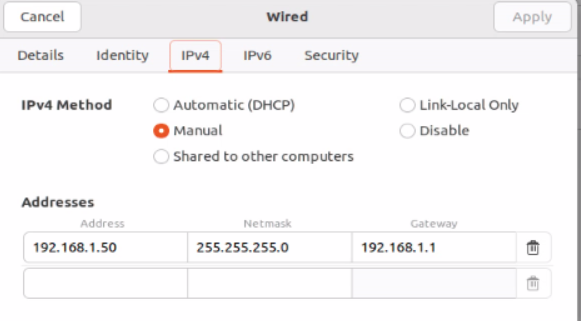 在Ubuntu的网络设置里进行ip更改:setting-network-wired