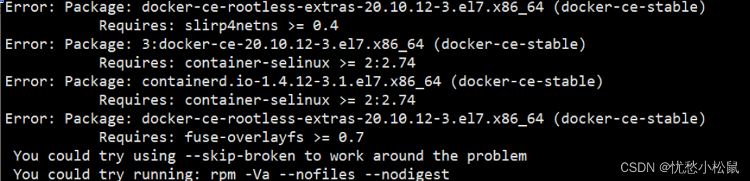 本文介绍了解决在安装Docker CE过程中遇到container-selinux问题的方法。主要原因是container-selinux未安装或版本过低。提供了两种解决方案:一是最小化安装情况下先下载wget工具再安装container-selinux;二是直接安装container-selinux。