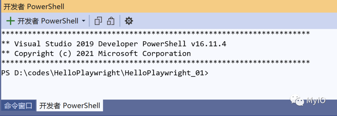 用 VS.NET 打开创建好的项目,在资源管理器的项目名称上点右键,选择“在终端中打开”,进入开发者 PowerShell 窗口: