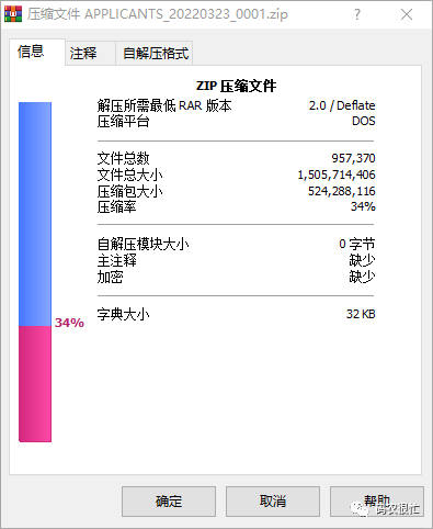 含有 95 万个文件的 zip 压缩包