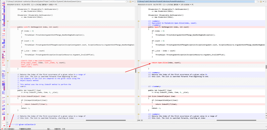 另外作者使用了Span优化了Add、Insert等等API,让它们有更好的随机访问性能;另外还加入了TryXXX系列API,可以更方便的方式的使用它。比如List<T>类相比PooledList<T>就有多达170个修改。