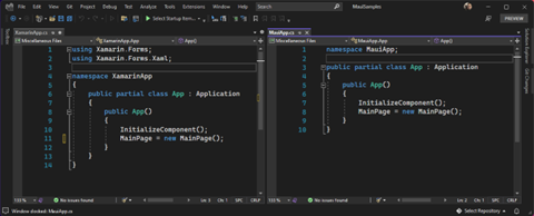 .NET MAUI 使用 .NET 6 中引入的新 C# 10 功能,包括全局 using 语句和文件范围命名空间 - 非常有助于减少文件中的混乱和杂乱。.NET MAUI 以“单一项目”为重点,将多目标提升到了一个新的水平。