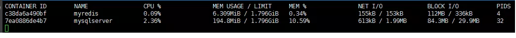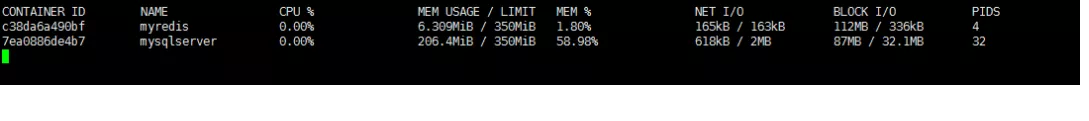 通过使用docker stats命令来看当前服务器的内存,由于平日的访问量并不高,可以给当前的mysql,redis分配小一些内存资源: