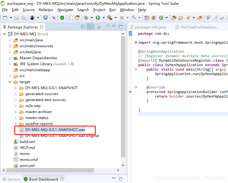 2、修改springboot启动类, 添加@EnableScheduling注解, 继承SpringBootServletInitializer类, 新增configure方法