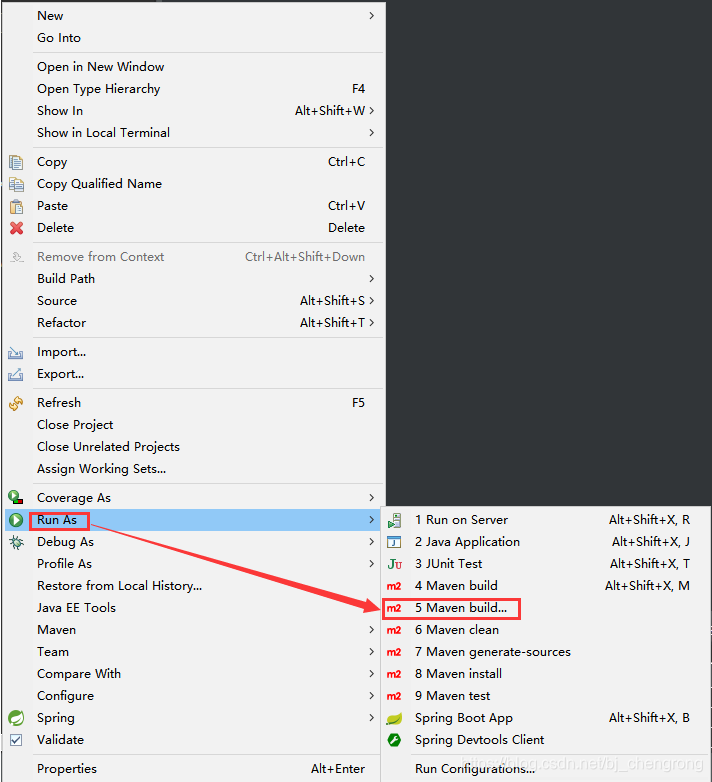5. 右键项目 Run As --> Maven build... 或者 Run as -> Install